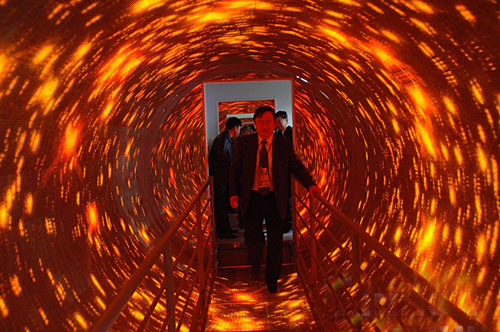當人沿通道橋步入隧道內,眼睛盯著旋轉的隧道內容,人的行動是受大腦指揮的,而大腦將接受下列信息才能發出指令:前庭覺將感受人體平衡信息(垂直或傾斜);視覺將感受人處地 ……